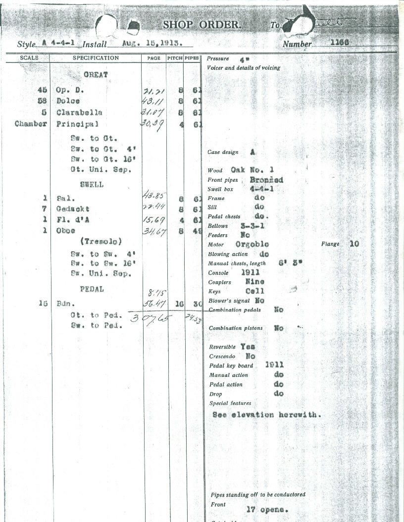 Swell8 Gedeckt8 Salicional4 Flute d'Amour8 Oboe (TC) Tremolo Sw to Sw 16-4 Sw Unison Off