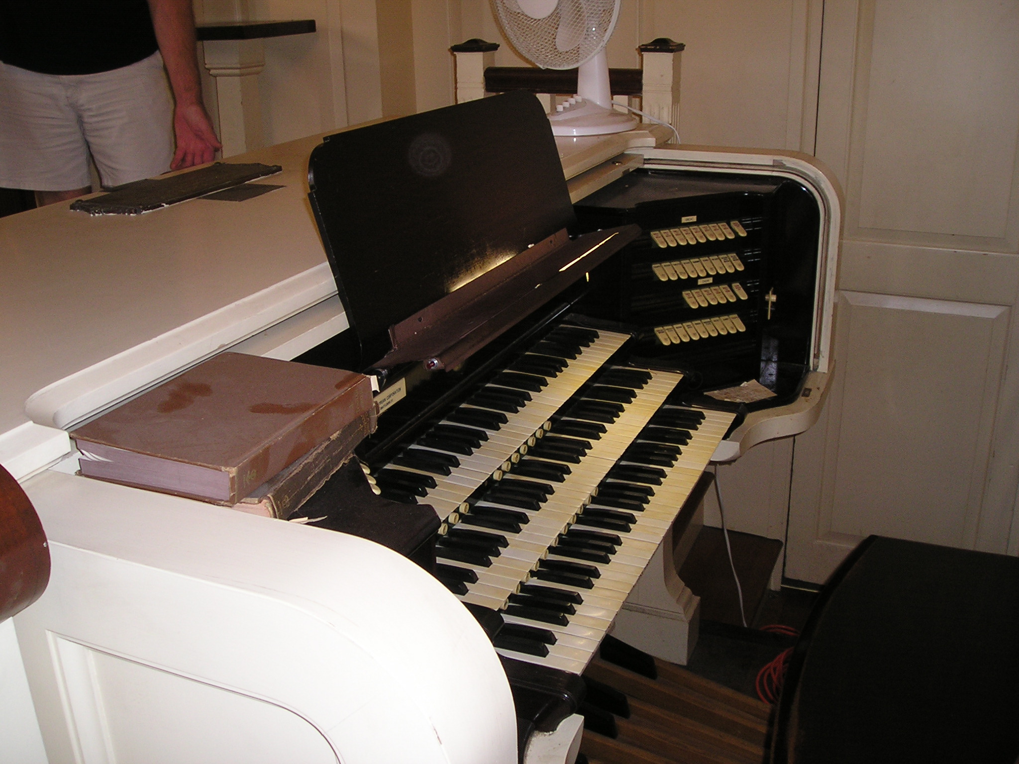 Swell 16 Bourdon 8 Violin Diapason 8 Stopped Diapason 8 Salicional 8 Voix Celeste 8 Aeoline 8 Traverse Flute 4 Octave 4 Orchestral Flute 2 2/3 Nazard 2 Flageolet 8 Cornopean 8 Oboe 8 Vox Humana Chimes Tremolo Sw Unison Off Sw to Sw 16-4 |