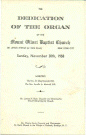 | Great 16 Pommer 8 Principal 8 Gemshorn 4 Octave 4 Pommer 2 Superoctave IV Fourniture Chimes Swell 16 Gedeckt 8 Gedeckt 8 Salicional 8 Celeste (TC) 4 Principal 4 Hohlflote 2 2/3 Nasard 2 Blockflote 1 3/5 Tierce III-V Plein Jeu 16 Trompette 8 Trompette 8 Oboe 4 Oboe-Clarion Tremolo Solo 8 Bombarde 8 Clarinet 8 English Horn Tremolo |