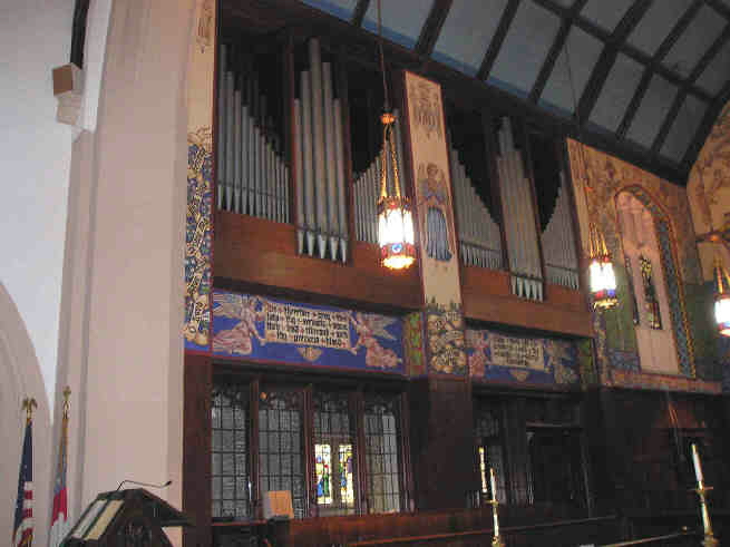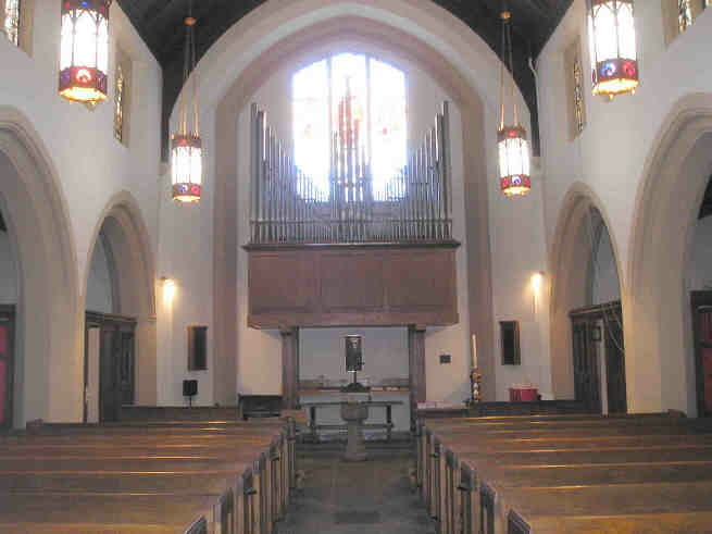 | Hauptwerk 16 Bourdon 8 Principal 8 Erzhaler 4 Prestant 4 Kleingedeckt 2 Octav IV Mixtur 8 Processional Diapason (TC) Sw to Gt 8 Pos to Gt 8 Schwellwerk 8 Grossgedeckt 8 Salicional 8 Vox Celeste (TC) 4 Principal 4 Traverseflote 2 2/3 Nazard 2 Waldflote 1 3/5 Terz IV-VI Plein Jeu 8 Helle Trompete Tremolo Sw to Sw 16-4 Sw Unison Off |